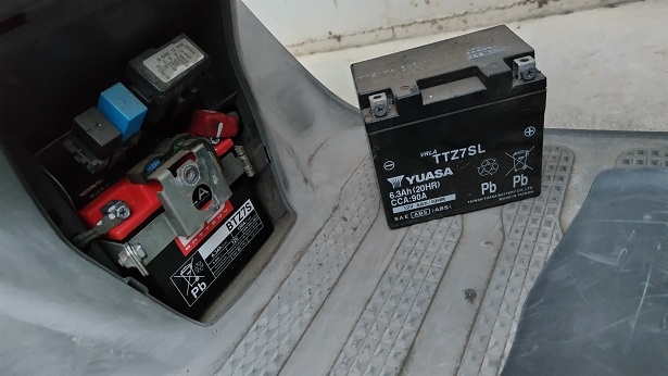 埼玉 川口市ズーマ50の不動:1年乗らなかったそうです。バッテリー電圧低下で交換となりました。プラグとエアクリーナー点検も行い完了です。